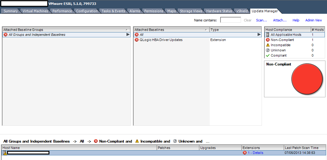 A problem reared it’s head over the weekend with one of our hosts’ Fibre Channel HBAs negotiating it’s way down to 2GB, and consequently introducing massive latency for the LUNs behind it. Analysis showed that the drivers for the HBA were over a year out of date so the suggested fix from VMware was to update the drivers. This is fine to do manually for a few hosts, but would be a real pain for the 300+ hosts in the environment I manage.