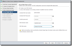 Note: For vRealize Automation it must use the default domain “vsphere.local” and site name “Default-First-Site”.