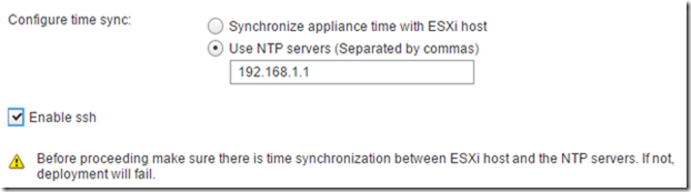 Configure NTP - NTP is critical for vRA deployments, and enable SSH because we’ll need it later to configure the PSC HA.