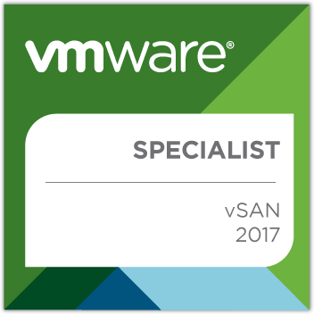 I always like to take a discounted exam at VMworld, this year I opted for the VMware vSAN 2017 Specialist exam, which was released a few weeks ago. Having delivered quite a few vSAN based solutions over the last few years, I was fairly confident in the blueprint. I am pleased to say that I passed the exam with a score of 422, way higher than I expected! I thought the exam itself was fair, and covered and tested the basics of vSAN well. You definitely need to know the supported architectures and how storage policies effect and apply to the data on vSAN.